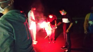 福島県にある震災遺構の荒浜小学校に行き、2011年3月11日に発生した東日本大震災の津波で残った学校の中を見学して、当時のことを学ぶ大切な機会となりました。お昼ご飯には名取サッポロ園にてBBQ、夜には花火大会をしました(^^♪